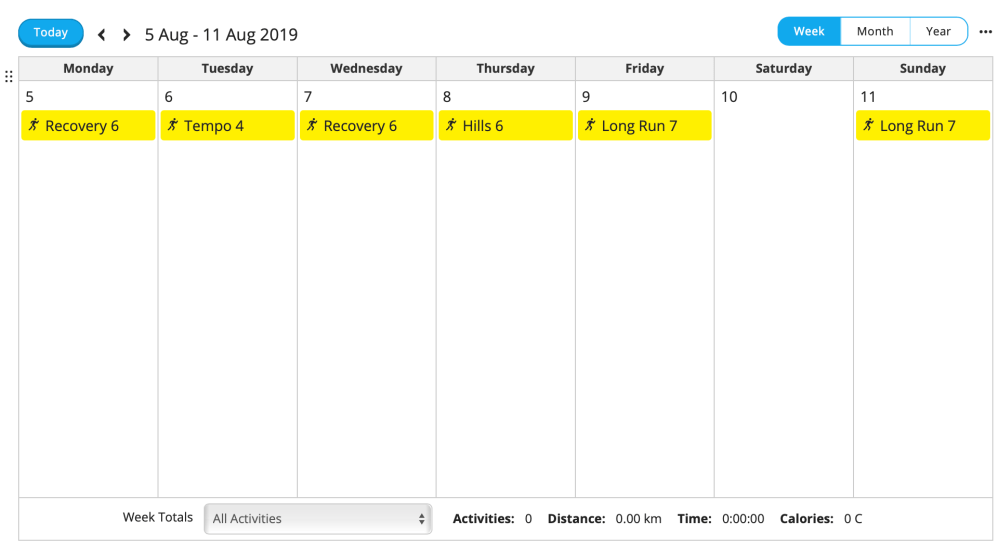 This weeks training was planned as this: